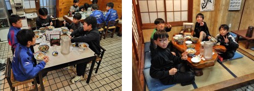 試合後はお食事処の「山田屋」さんで夕食をいただき、